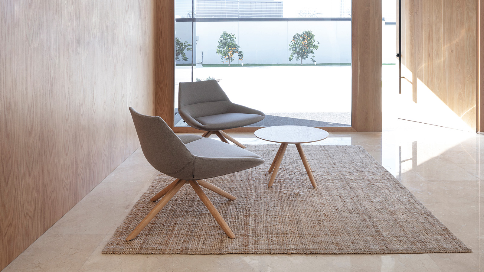 La colección ofrece sillones lounge disponibles en dos alturas de respaldo, que pueden combinarse con una cuidada selección de bases fijas o giratorias, realizadas en metal o madera, permitiendo adaptar cada pieza a distintos usos y contextos. Esta flexibilidad convierte a DUNAS XL en una solución ideal para espacios corporativos, hoteleros y residenciales, donde el confort y la estética deben convivir en equilibrio.