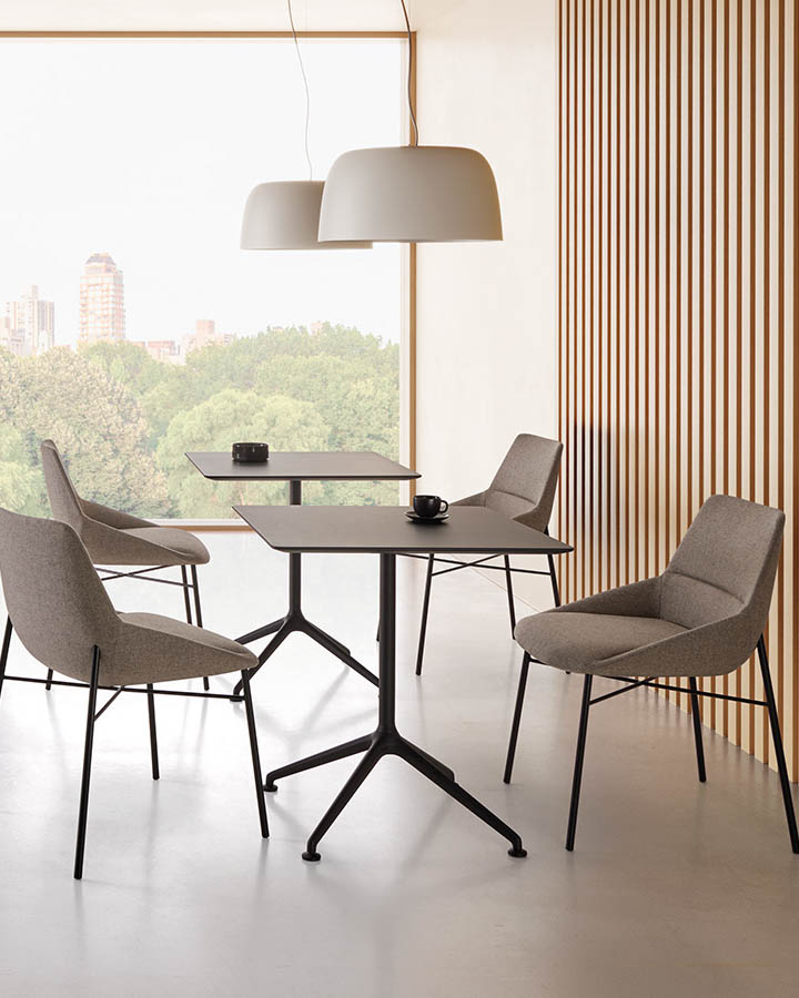 Esta versatilidad permite configurar sillas, butacas y taburetes adaptados tanto a entornos contract, corporativos, hosteleros o residenciales, manteniendo siempre una estética coherente y elegante. Las líneas limpias, el equilibrio formal y la atención al detalle reflejan el lenguaje depurado característico de Christophe Pillet.