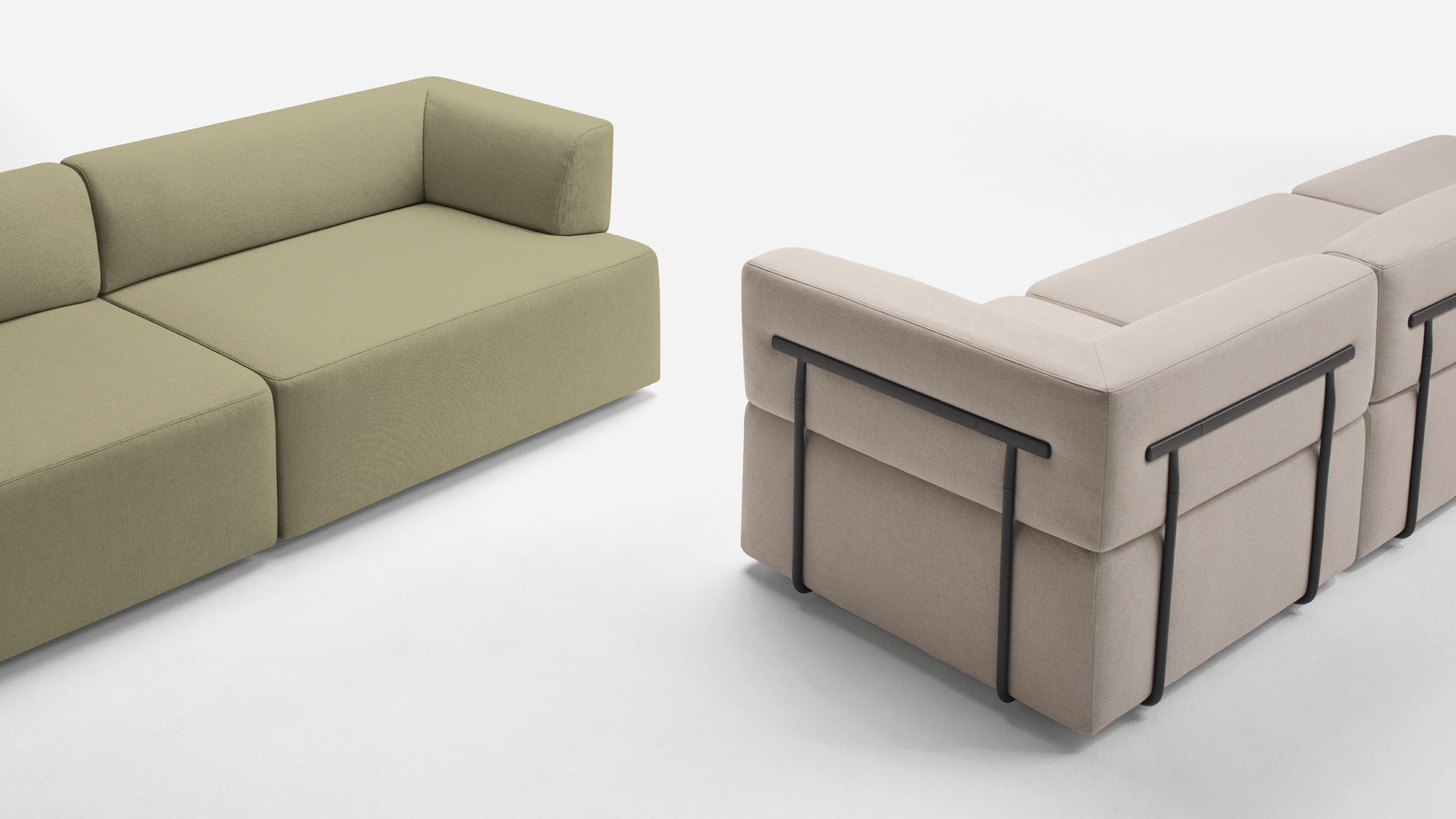Uno de sus rasgos más distintivos es el elegante soporte que sustenta los respaldos, una pieza original que aporta personalidad y eleva la estética del conjunto. Gracias a la extensa selección de tejidos, materiales y acabados, ENTROPY ofrece posibilidades de personalización prácticamente ilimitadas, integrándose con facilidad en los entornos más diversos.