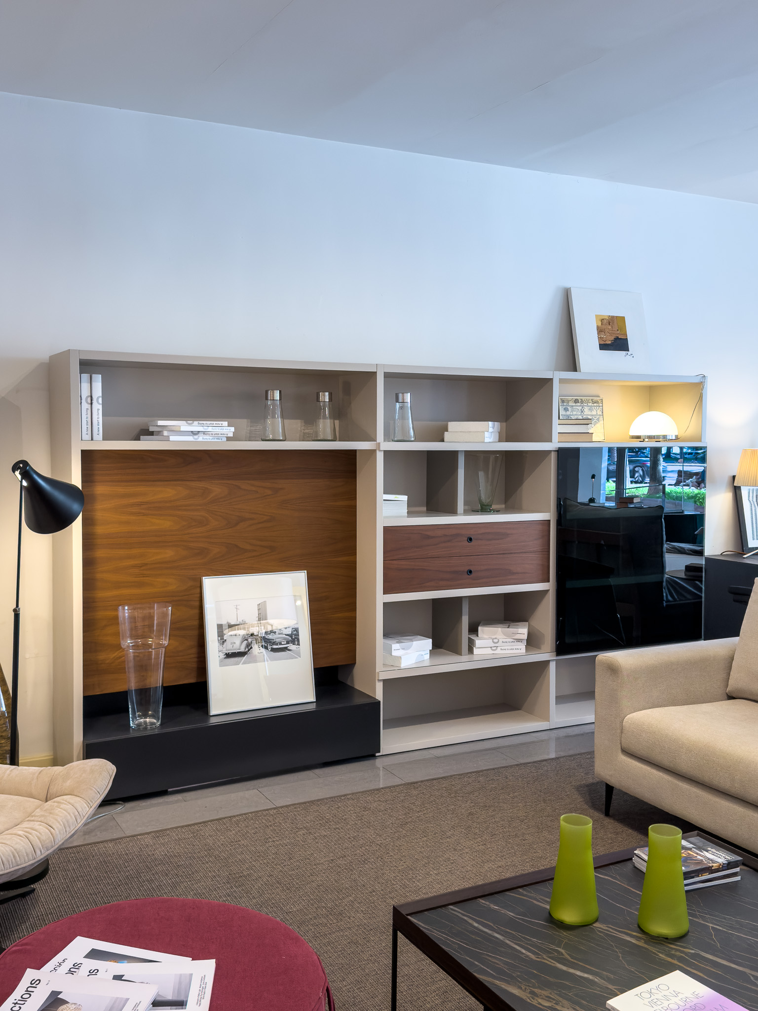 Librería IOS de Loyra 335x42x181h cm Arena, Nogal y Antracita