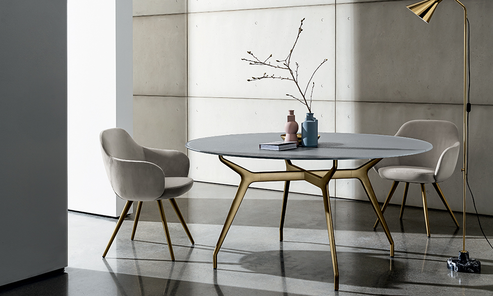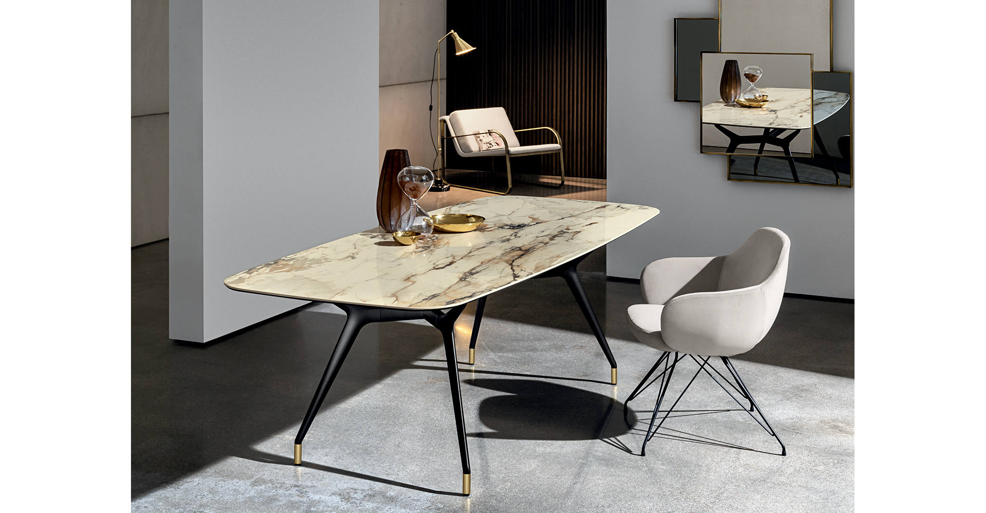 Reinterpretada desde una mirada contemporánea, ARKOS combina tradición y tecnología mediante el uso de técnicas avanzadas como la fundición de aluminio a presión para sus bases. Las estructuras, disponibles con patas en X o en Y, destacan por su ligereza visual, su perfil estilizado y su fuerte presencia arquitectónica. La colección incluye mesas rectangulares, redondas, extensibles y formatos especiales, ofreciendo soluciones versátiles para comedores y espacios contemporáneos que buscan diseño atemporal y sofisticación.