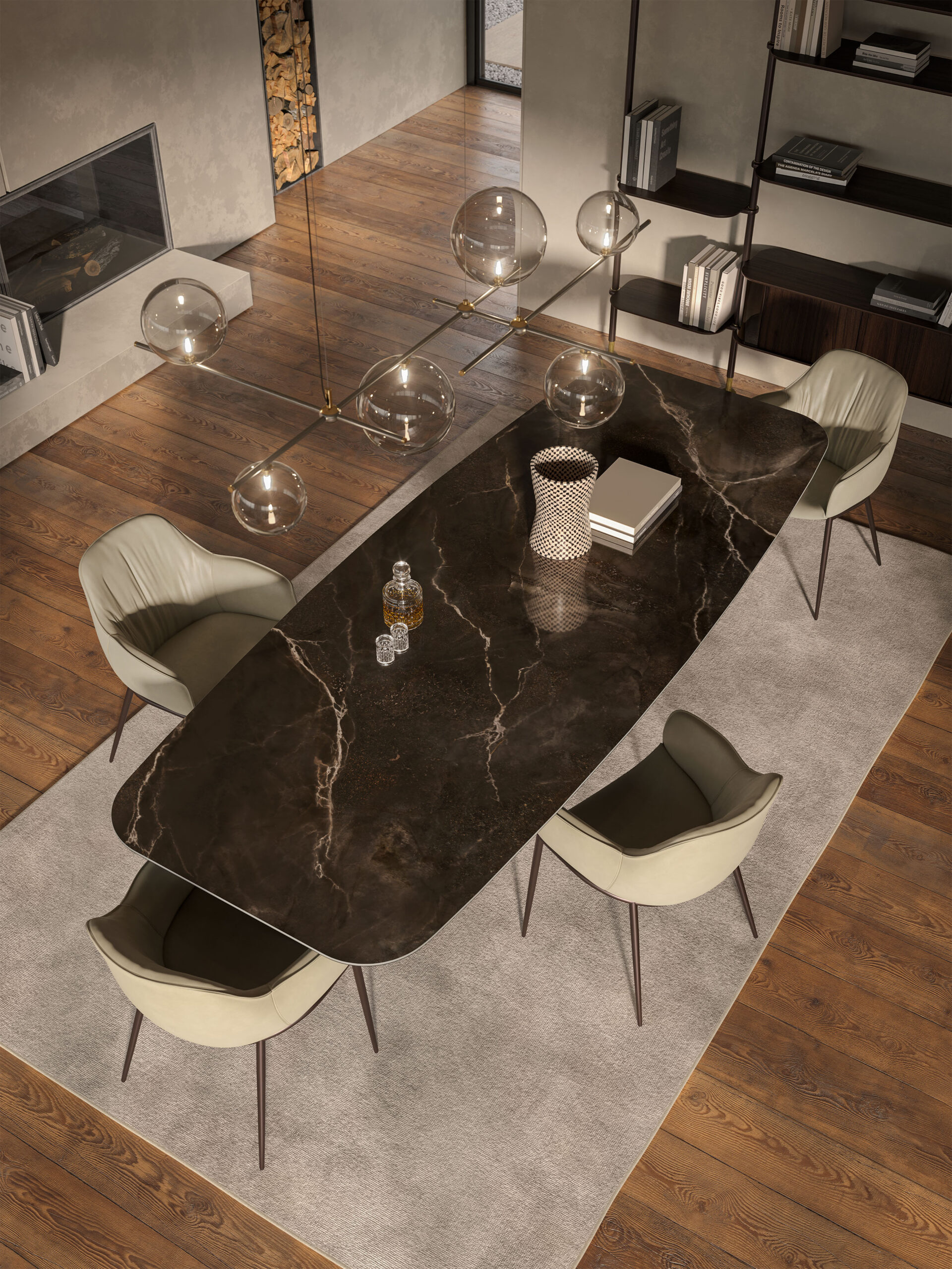 Disponible en distintas versiones —Wood, Keramik y Keramik Premium—, la colección Tyron rinde homenaje a los materiales más nobles de la artesanía italiana. Destaca especialmente la versión Masterwood, elaborada con un innovador proceso de tratamiento de maderas que convierte cada mesa en una pieza única e irrepetible.
