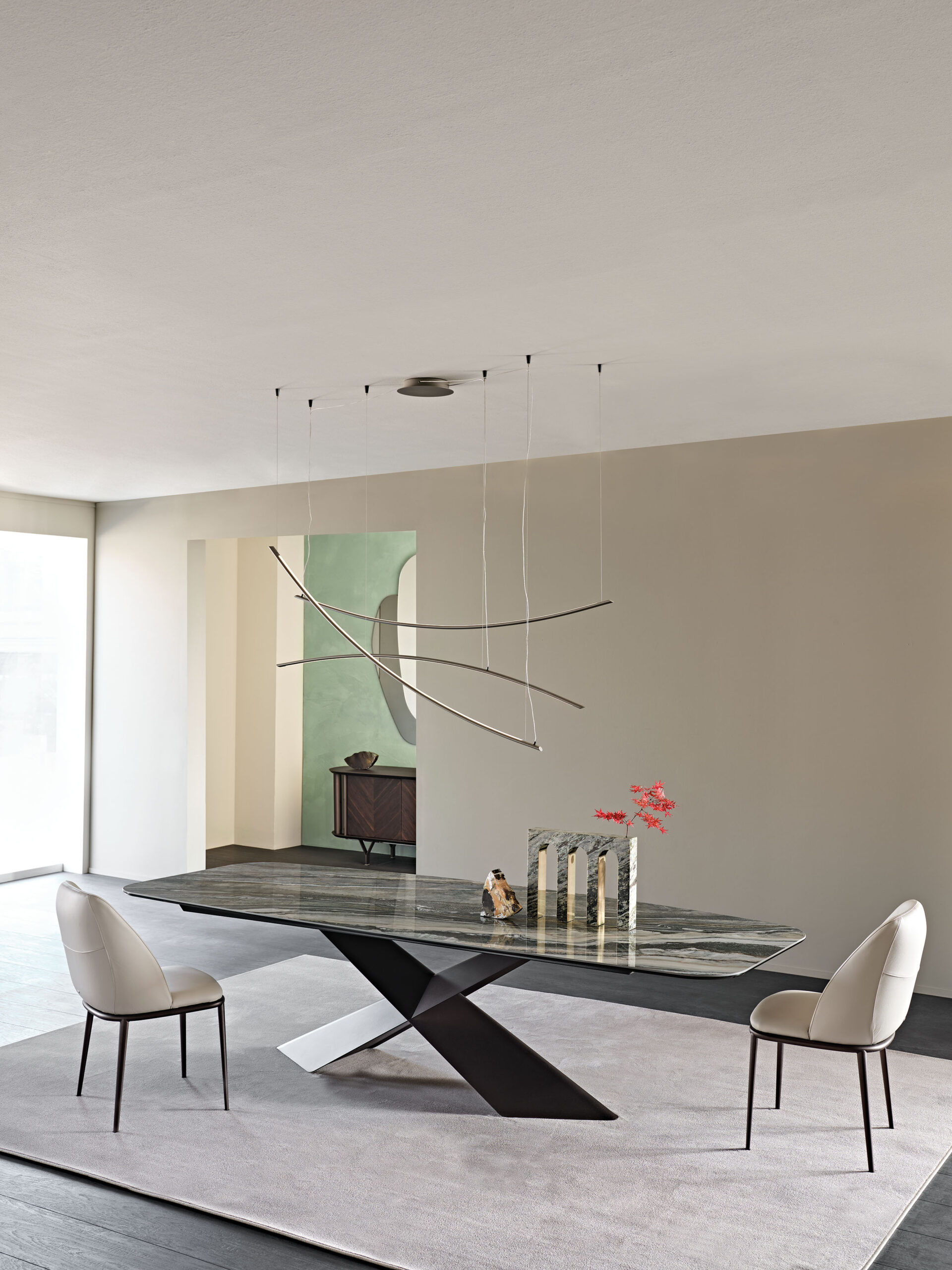 La Mesa Tyron de Cattelan Italia, diseñada por Paolo Cattelan, redefine el concepto del salón moderno a través de una estética audaz y contemporánea. Su base icónica y escultural se combina con sobres personalizables, creando una pieza que fusiona arte, funcionalidad y diseño italiano.