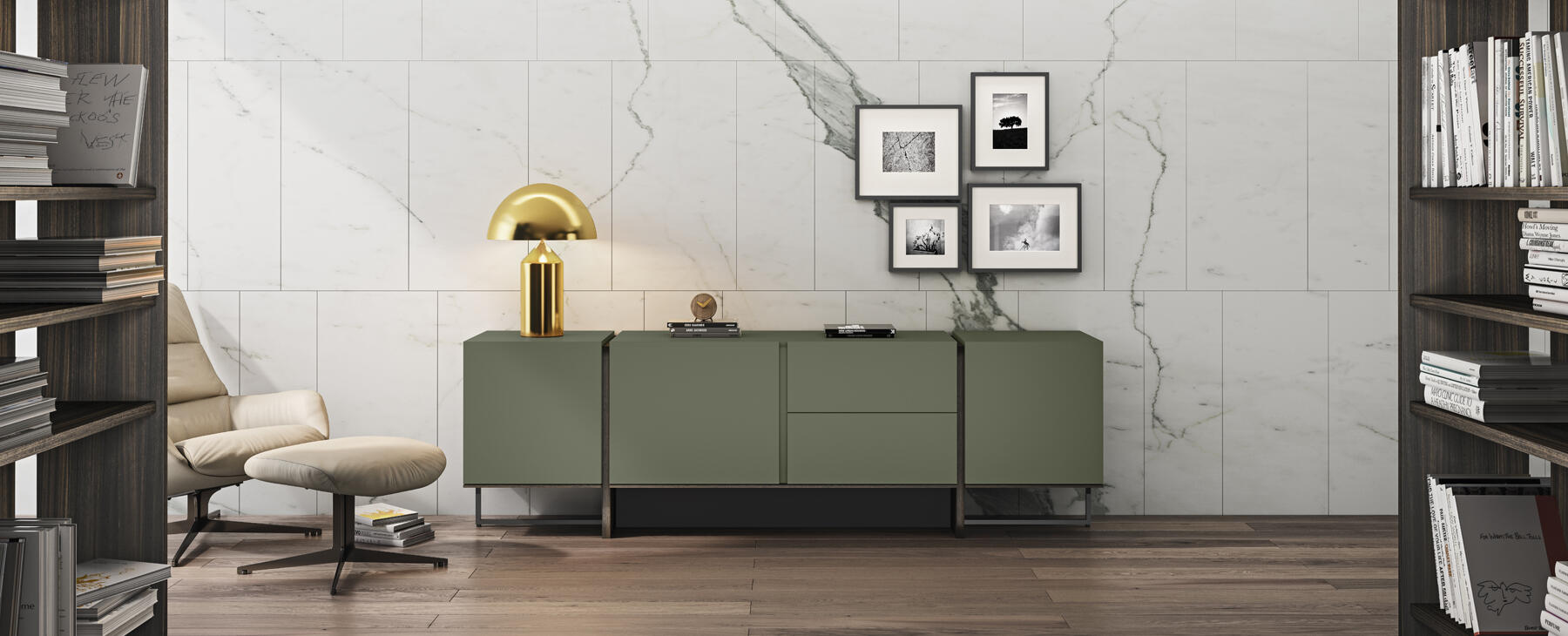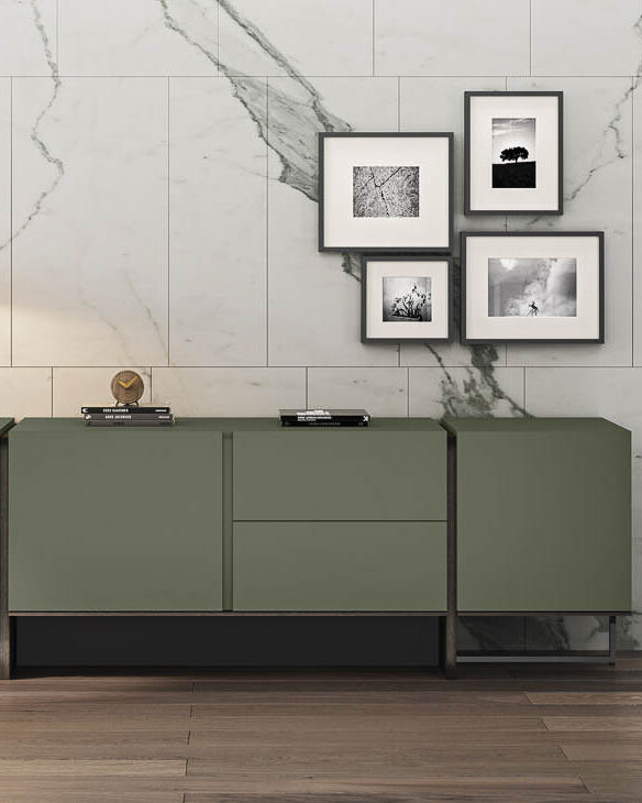 Los sistemas de herrajes aseguran un cierre amortiguado y una triple regulación para un ajuste preciso. Tecnología, ebanistería y elegancia se fusionan en una propuesta única, ideal para quienes buscan un mueble de televisión exclusivo y adaptable a su estilo.
