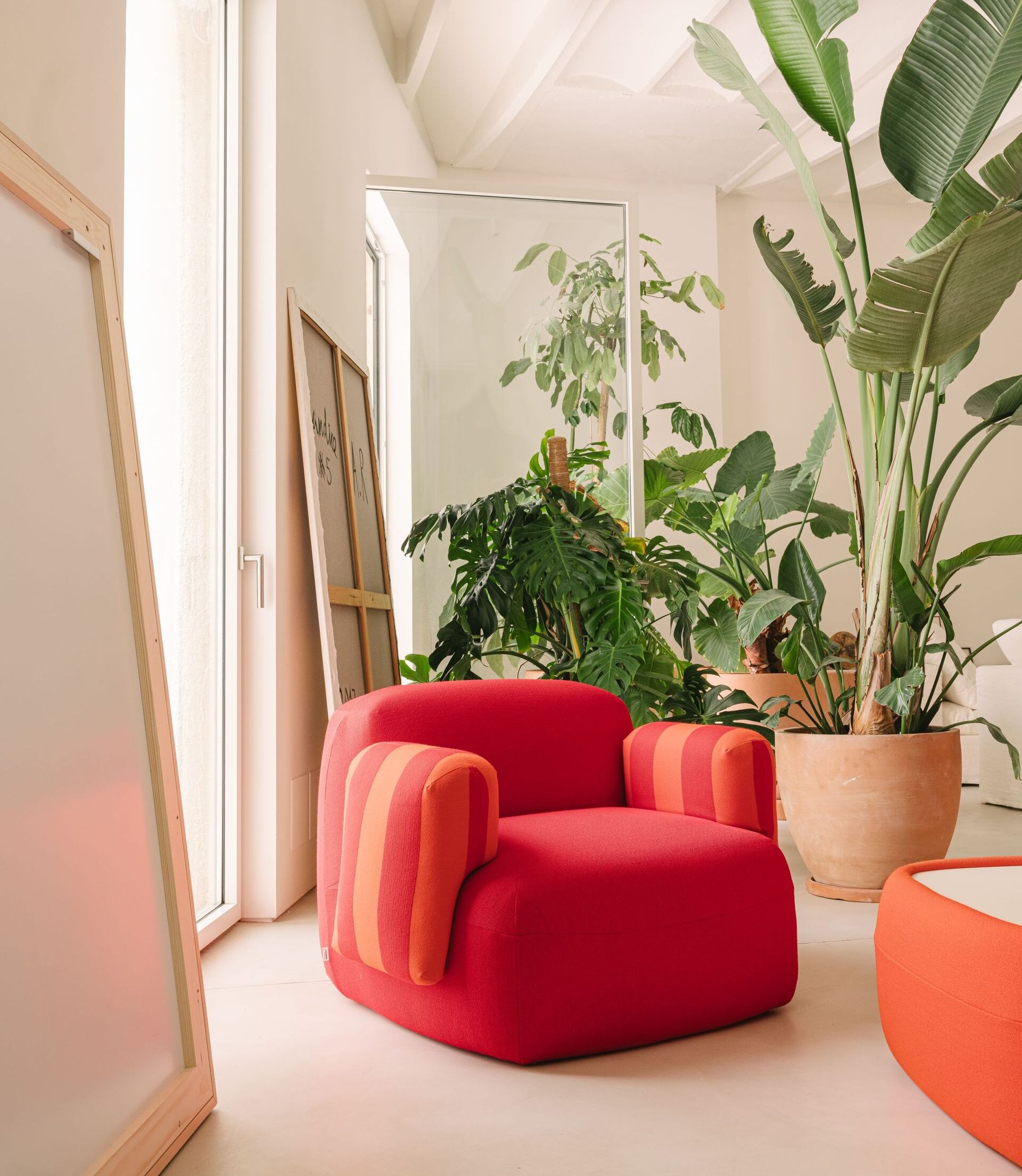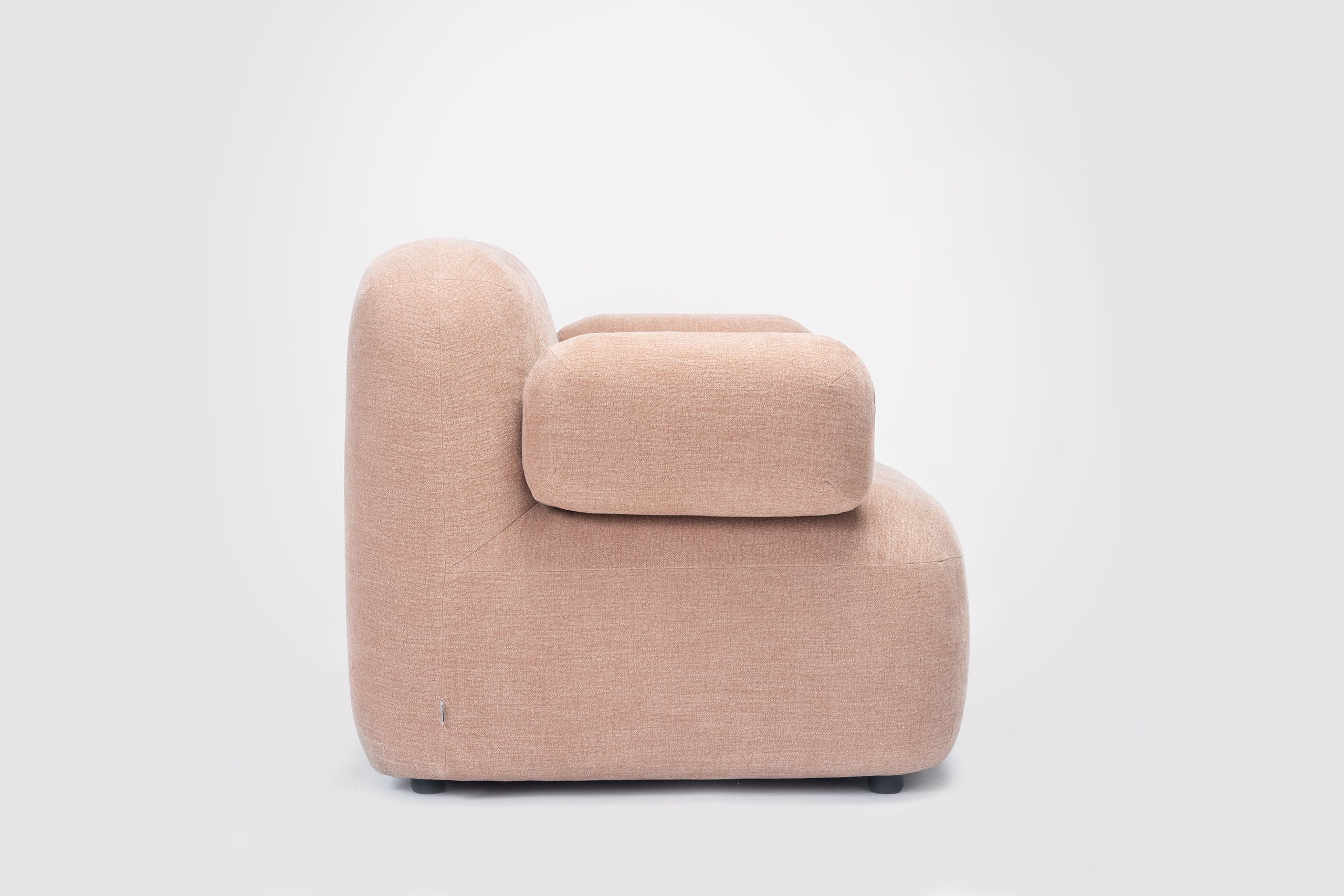 Gumi Brazos también está disponible en variantes para exterior, manteniendo su personalidad dulce y su comodidad en terrazas, patios o zonas lounge al aire libre. Una pieza versátil, acogedora y perfecta tanto para entornos domésticos como contract.