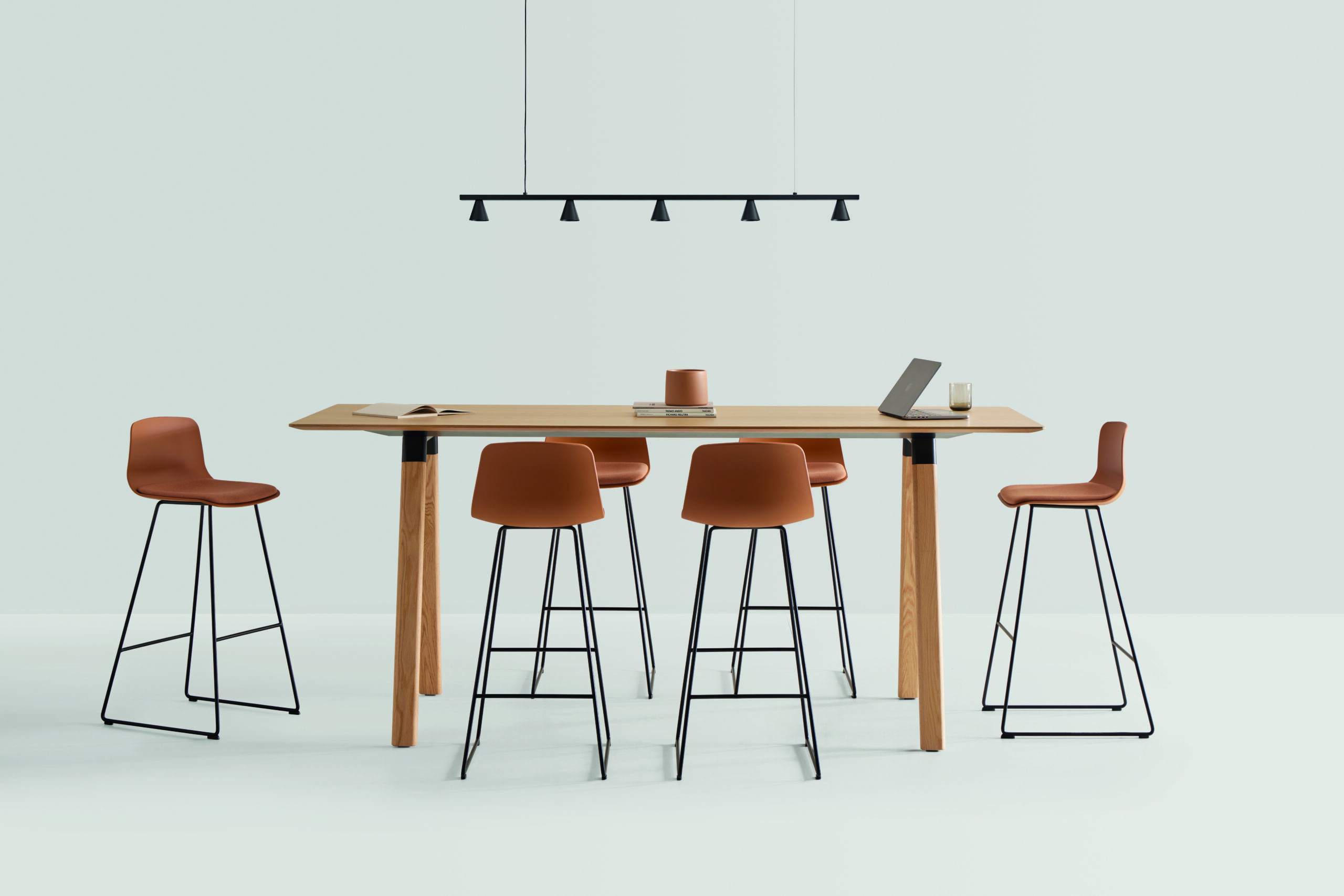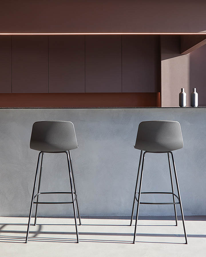 • Taburete alto o medio con 4 patas de madera, que aporta un toque más cálido.